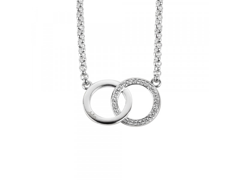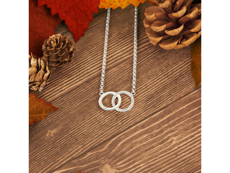 Twee cirkels die samen verbonden worden; een teken van verbintenis. De zirkonia's geven dit prachtige symbool een extra sprankeling.