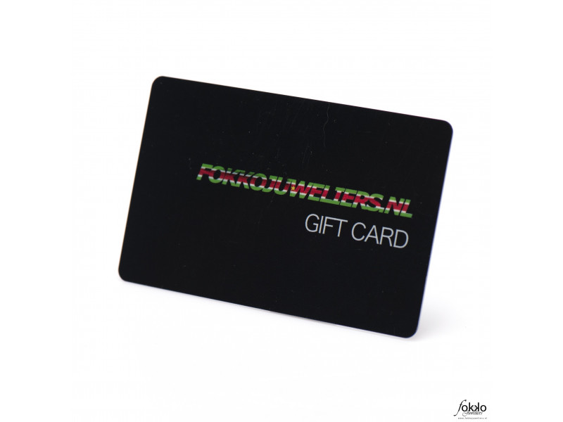 De FokkoJuweliers gift card wordt in een leuke cadeauverpakking bezorgd, zodat je iemand er direct mee kunt verblijden. De gift card is verkrijgbaar in verschillende waardes, vanaf €20 tot en met €300. Op de voorkant van de gift card is de Surinaamse vlag te zien. Op de achterkant is het wapen van Suriname te zien met daaronder een kraslaag met de gift card code die ingevoerd kan worden op onze website.
