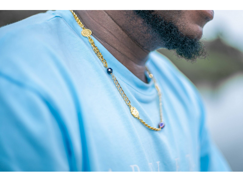 Lees hier alles over vergulde Surinaamse sieraden en de garantie. Deze ala kondre ketting heeft minimaal 3 micron 18K goud.