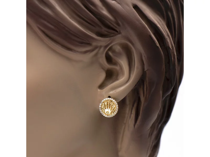 Deze vergulde Rolex oorbellen met zirkonia van Fokko Design heeft een stijlvol design met een goede oog voor de details.